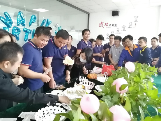 在海瑞思這個特別的日子,它像一支待放的花苞,為生日的員工們盛大綻放,千言萬語道不盡的祝福,都不如一句“祝你生日快樂”讓人暖心。在搖曳的燭光中,全體員工一起唱生日歌,壽星們紛紛許下自己的生日愿望。海瑞思還為壽星們準(zhǔn)備了好吃的蛋糕、驚喜滿滿的生日禮物以及長壽面,大家其樂融融,幸??M繞在其中。